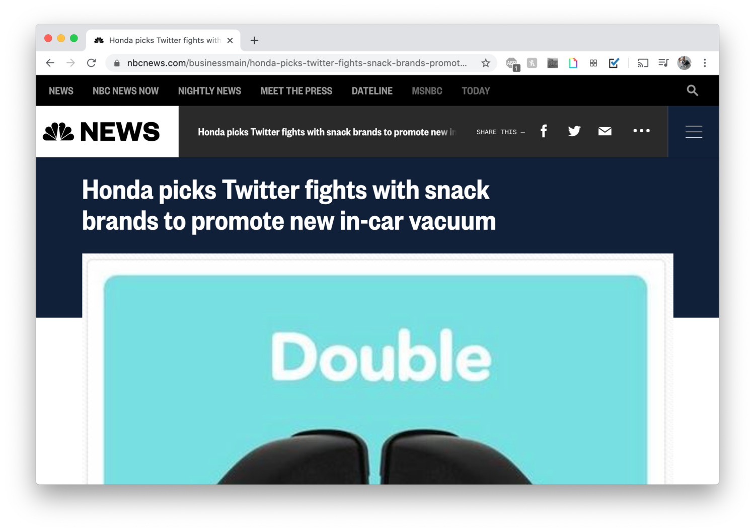 Warn snack brands on Twitter that the HondaVAC is coming for them by creating the first large scale interbrand Twitter event.
